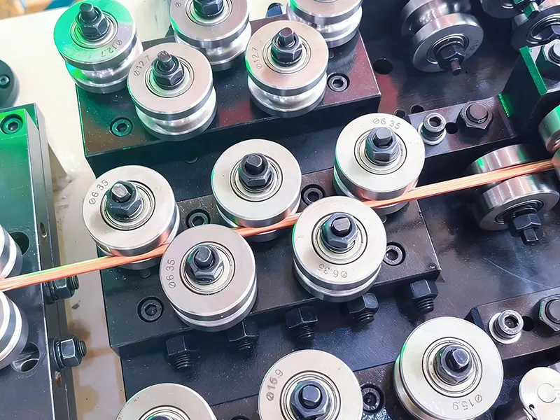 GRM Rolling Mill zavodu düzbucaqlı maqnit naqillərin dəqiq formalaşdırılması üçün nəzərdə tutulmuş yüksək dəqiqlikli elektromaqnit məftil yayma dəyirmanı təklif edir. Avadanlıq ekstruziya və ya soyuq yayma proseslərindən istifadə edir və telin çoxsaylı yayma keçidləri vasitəsilə dəqiq künc formalarına malik olmasını təmin edir və emaye, kağız və ya polyester sarğı ilə izolyasiya edilə bilər. Yayma dəyirmanı mükəmməl rulon sıxlığını və izolyasiya keyfiyyətini təmin etmək üçün yüksək səviyyəli qalınlığa və eninə nəzarət sisteminə malikdir və mühərriklər, transformatorlar və çeviricilər kimi yüksək performanslı elektrik avadanlıqlarının istehsalında geniş istifadə olunur.